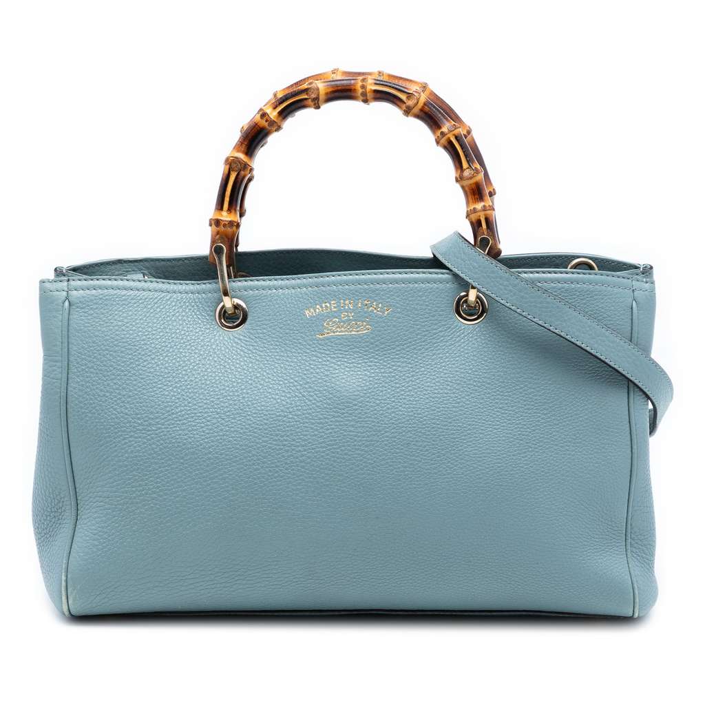 Gucci Medium Calfskin Bamboo Shopper Satchel Blue Large Leat