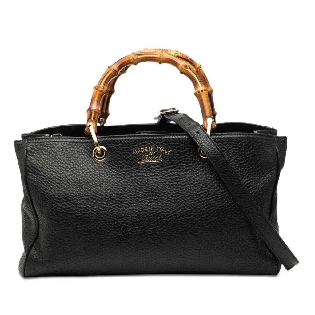 Gucci Medium Calfskin Bamboo Shopper Satchel Black Large Lea