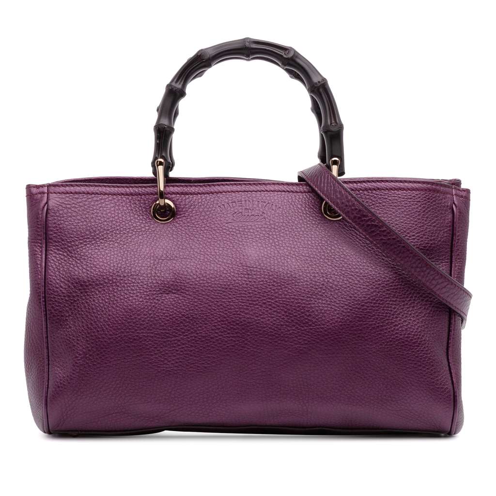 Gucci Medium Calfskin Bamboo Shopper Satchel Purple Large Le