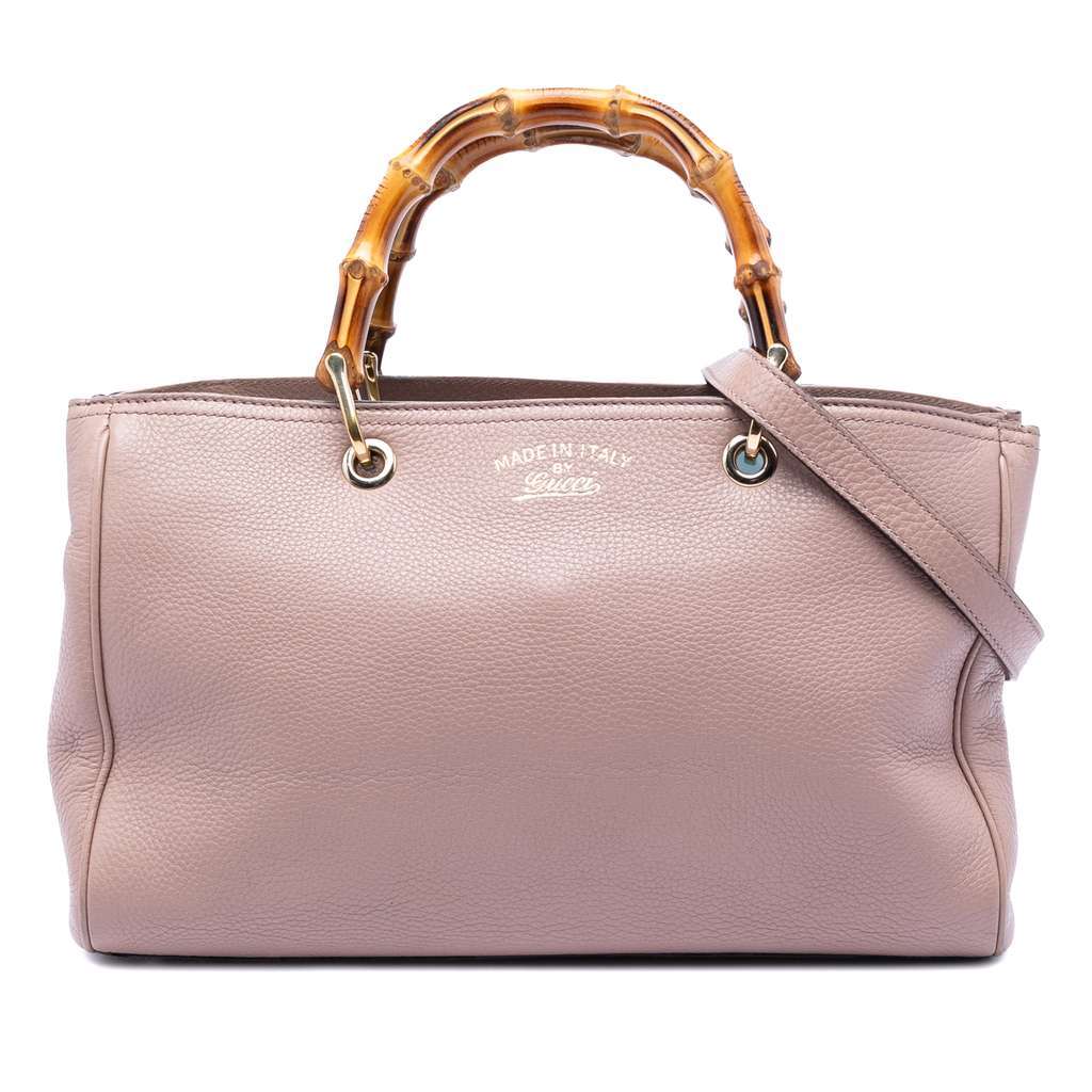 Gucci Medium Calfskin Bamboo Shopper Satchel Pink Large Leat