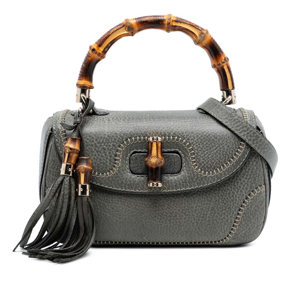 Gucci Medium Calfskin New Bamboo Top Handle Bag Grey Medium