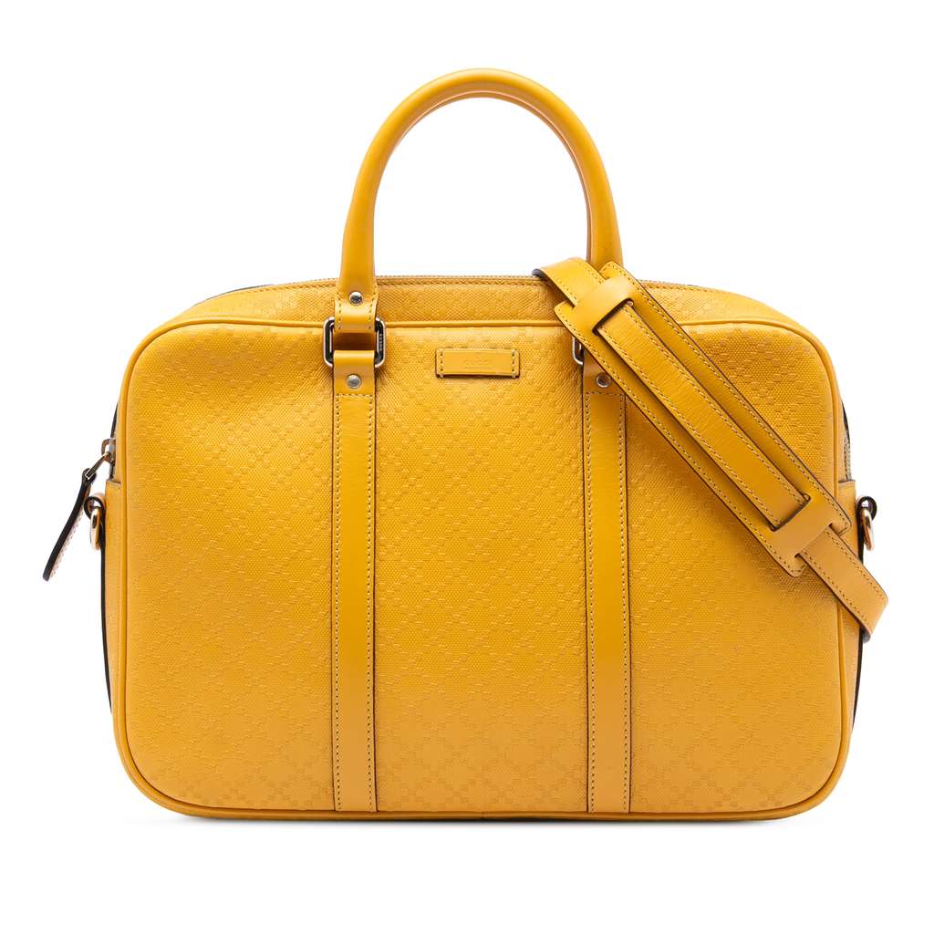 Gucci Medium Diamante Bright Leather Business Bag Yellow Lar