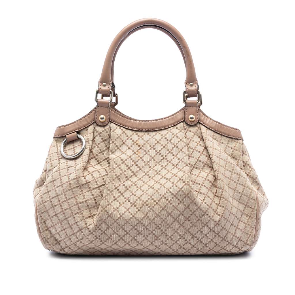 Gucci Medium Diamante Canvas Sukey Tote Beige Large Canvas