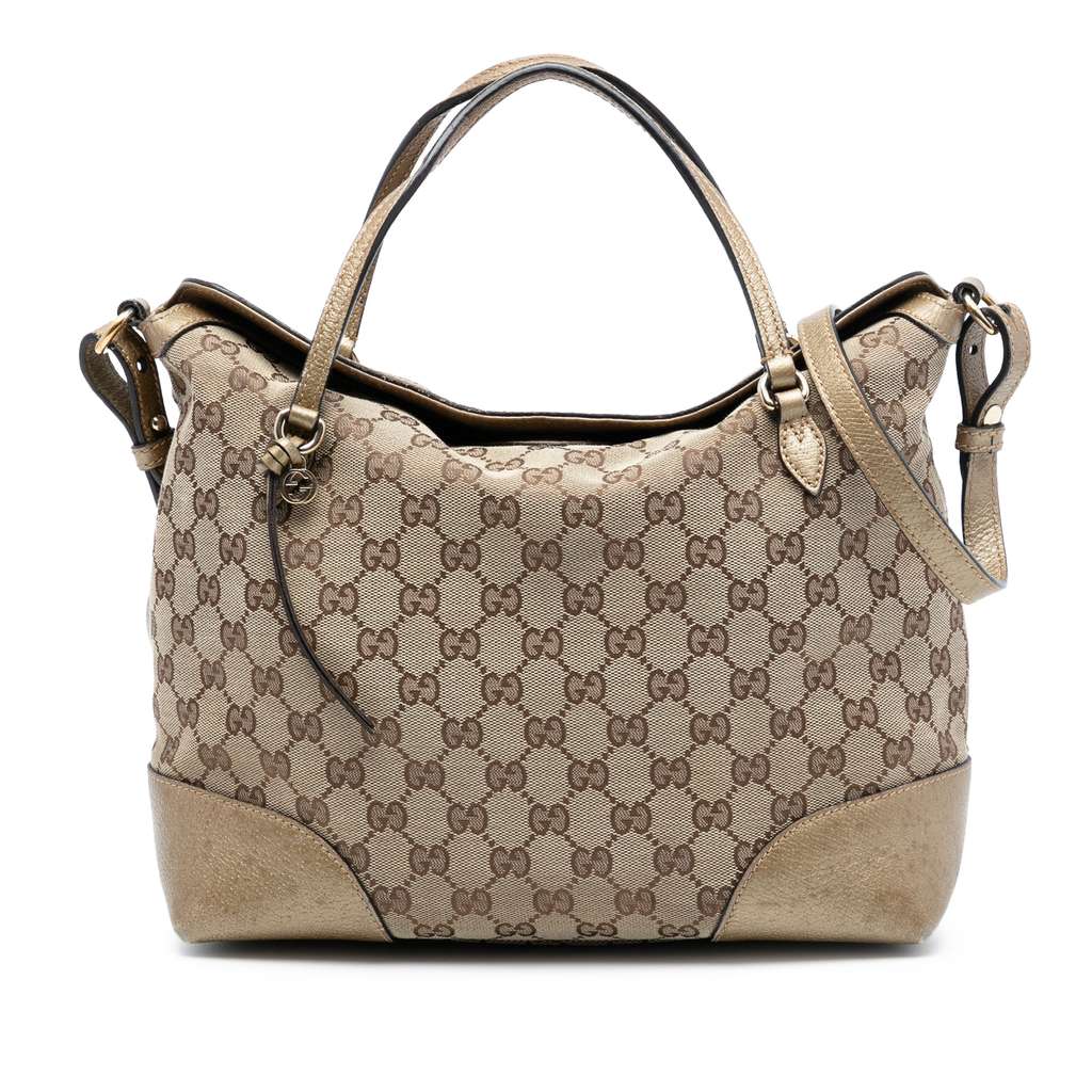 Gucci Medium GG Canvas Bree Fold Over Tote Beige Medium Canv