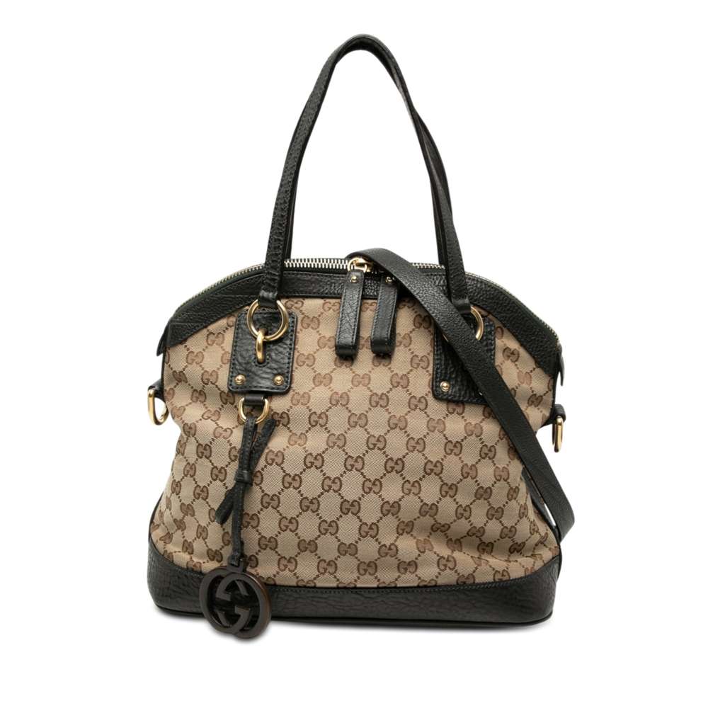 Gucci Medium GG Canvas Charm Dome Satchel Beige Large Canvas