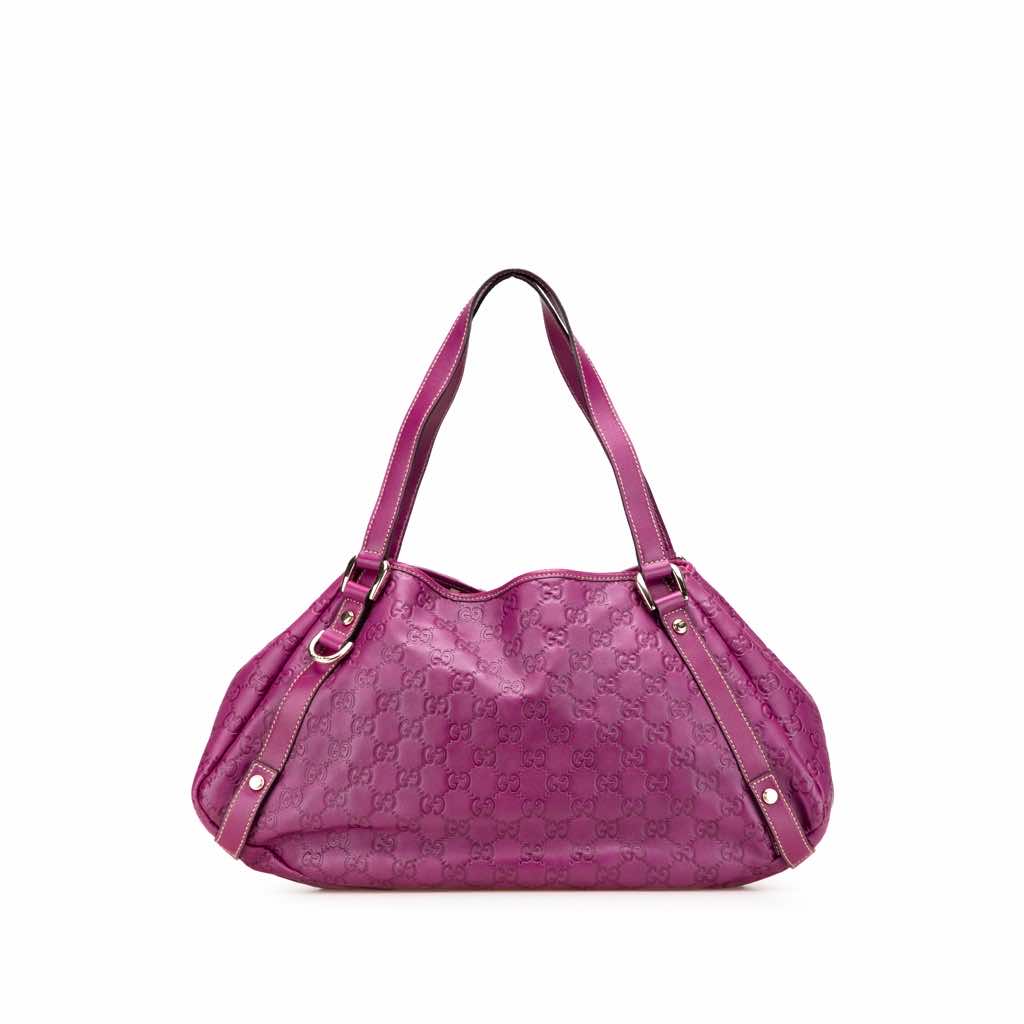 This tote bag features an embossed leather body, flat leather shoulder straps, an open top, and interior zip and slip pockets.