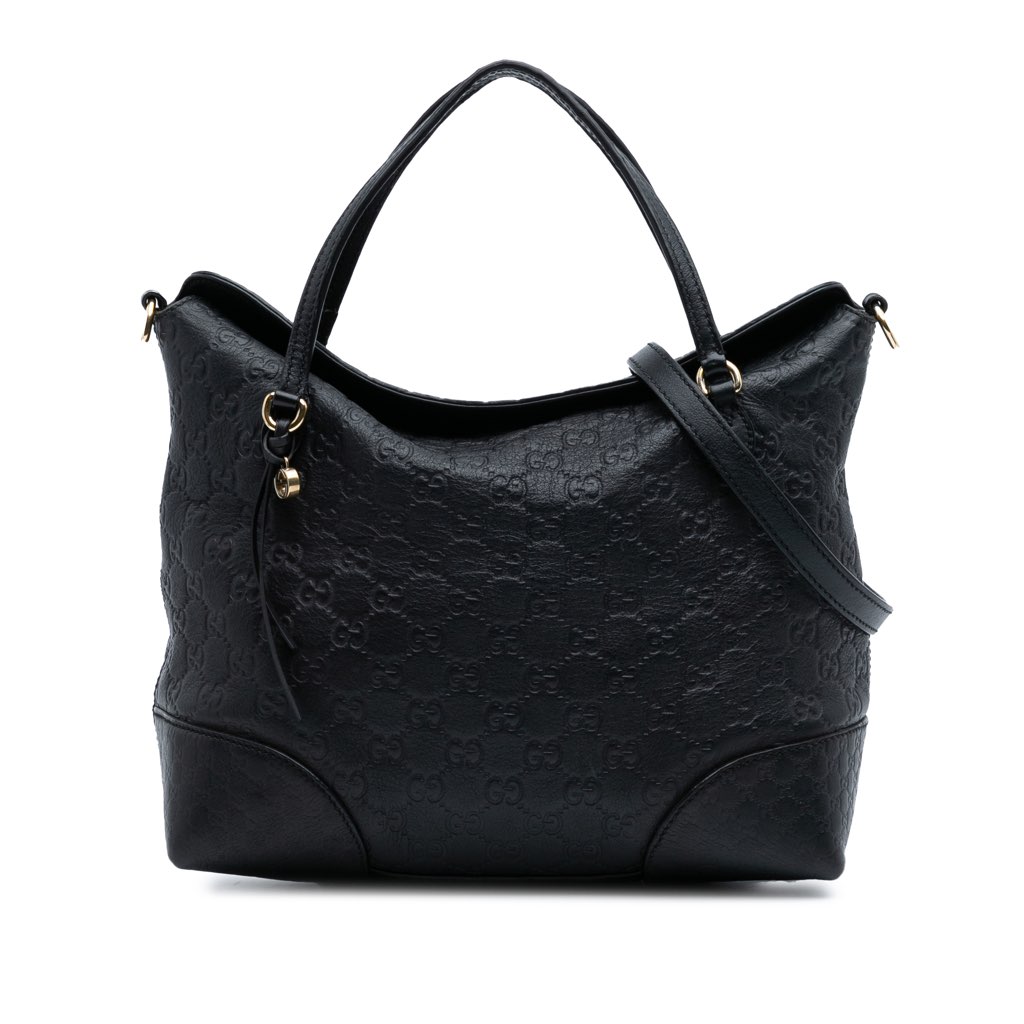 This Bree features a leather body, flat leather handles, a detachable flat leather strap, fold over top, tassel detail and interior zip and slip pockets. The straps were repainted.
