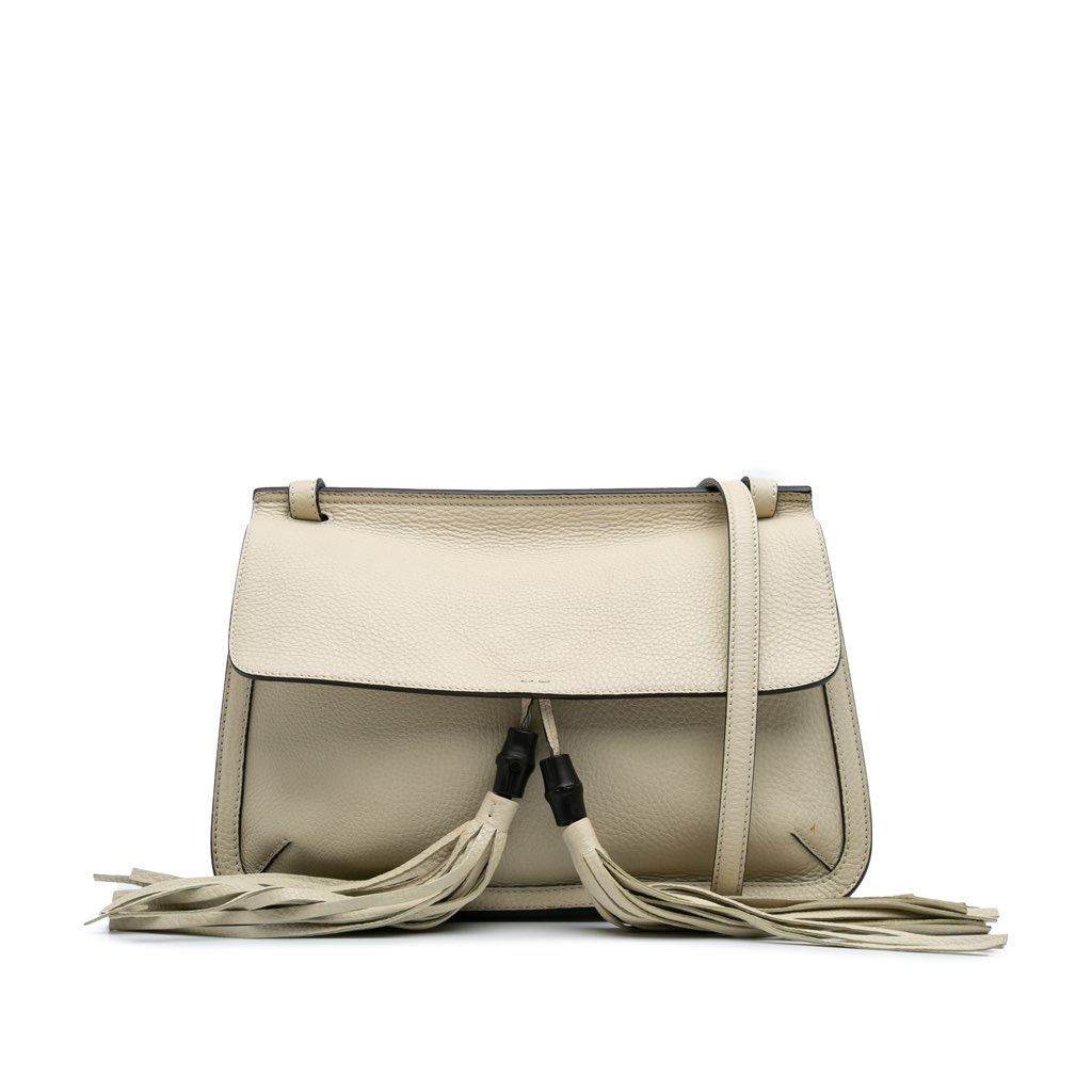 The Bamboo Daily features a leather body with bamboo-accented leather tassels, an adjustable flat leather strap, a front flap with magnetic snap closure, and interior zip and slip pockets.