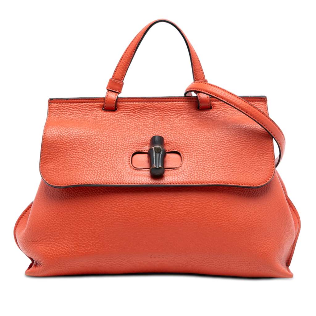 Gucci Medium Leather Bamboo Daily Satchel Orange Large Leath