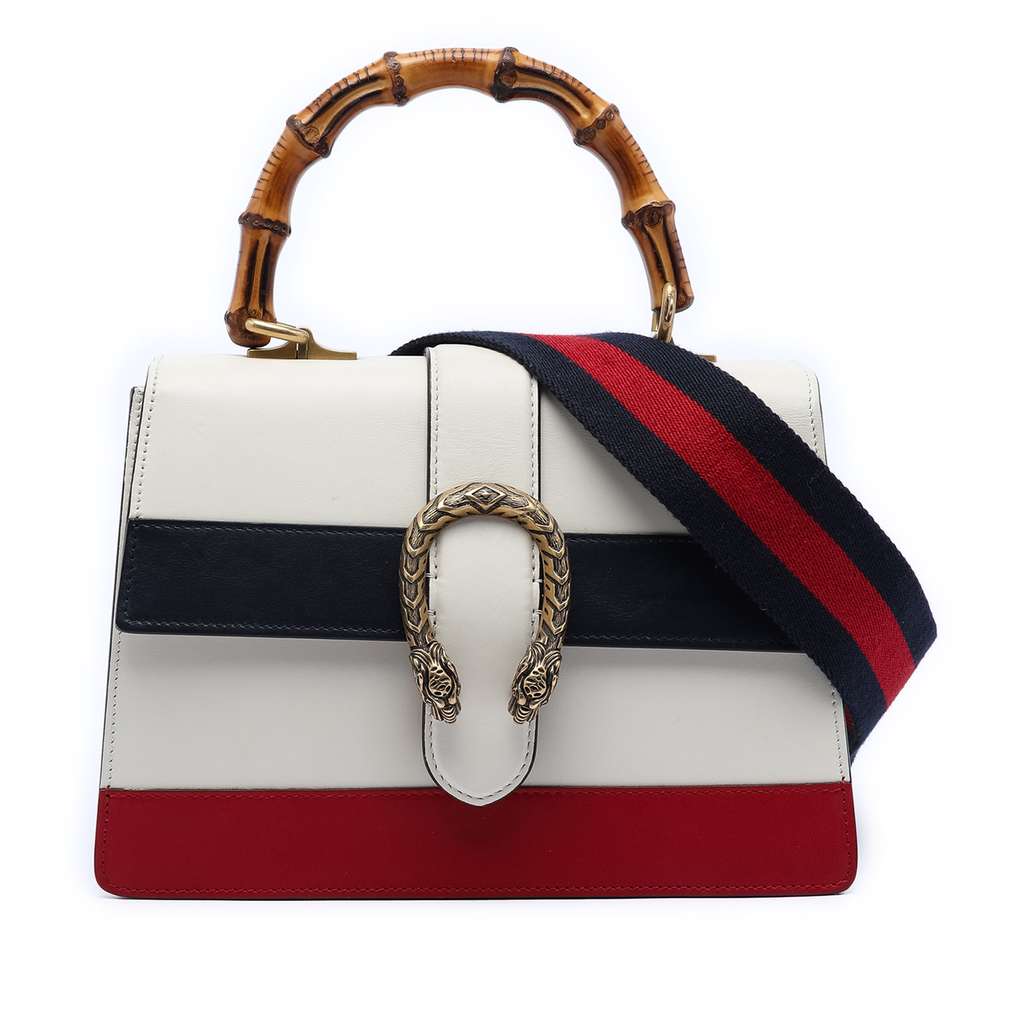 Gucci Medium Leather Bamboo Dionysus Web Satchel White Mediu