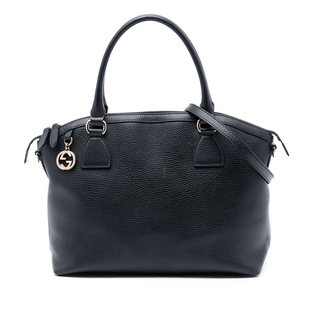 Gucci Medium Leather GG Charm Dome Satchel Black Large Leath