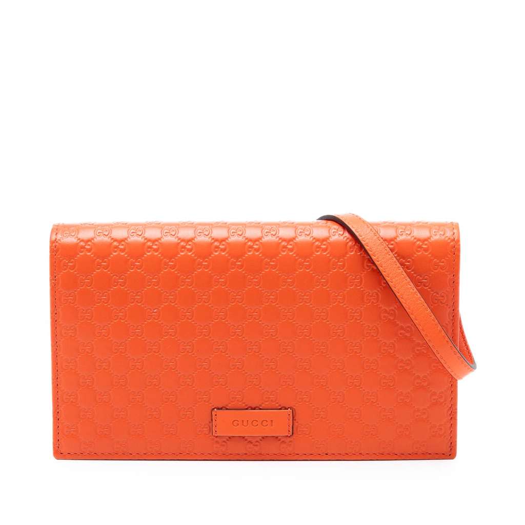 Gucci Microguccissima Wallet on Strap Orange Small Leather