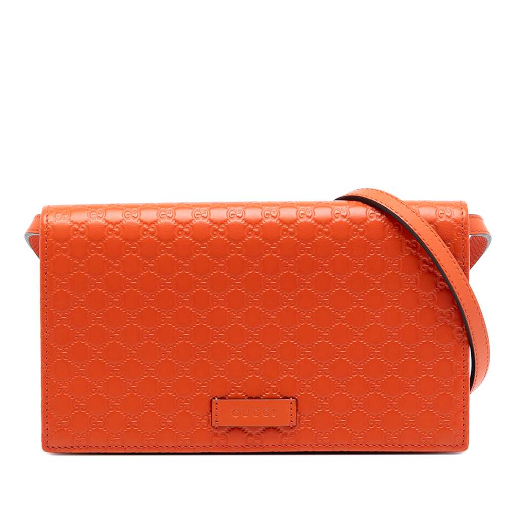 Gucci Microguccissima Wallet on Strap Orange Small Leather