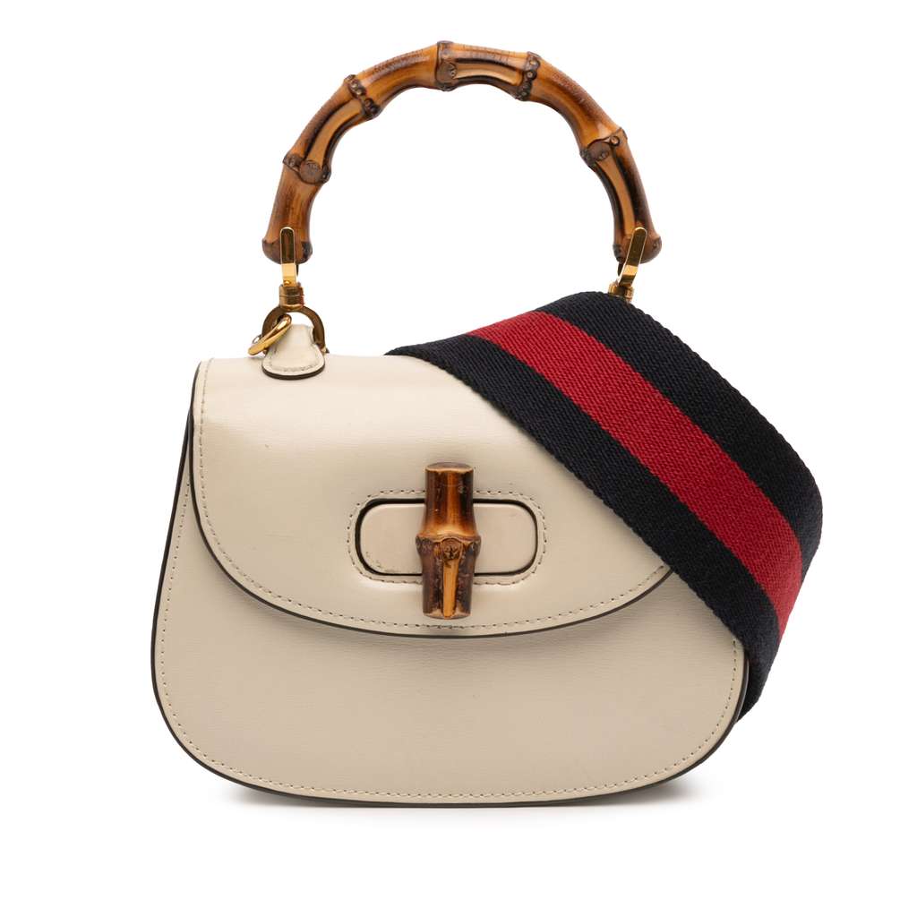 Gucci Mini Calfskin 1947 Bamboo Top Handle Bag White Mini Le