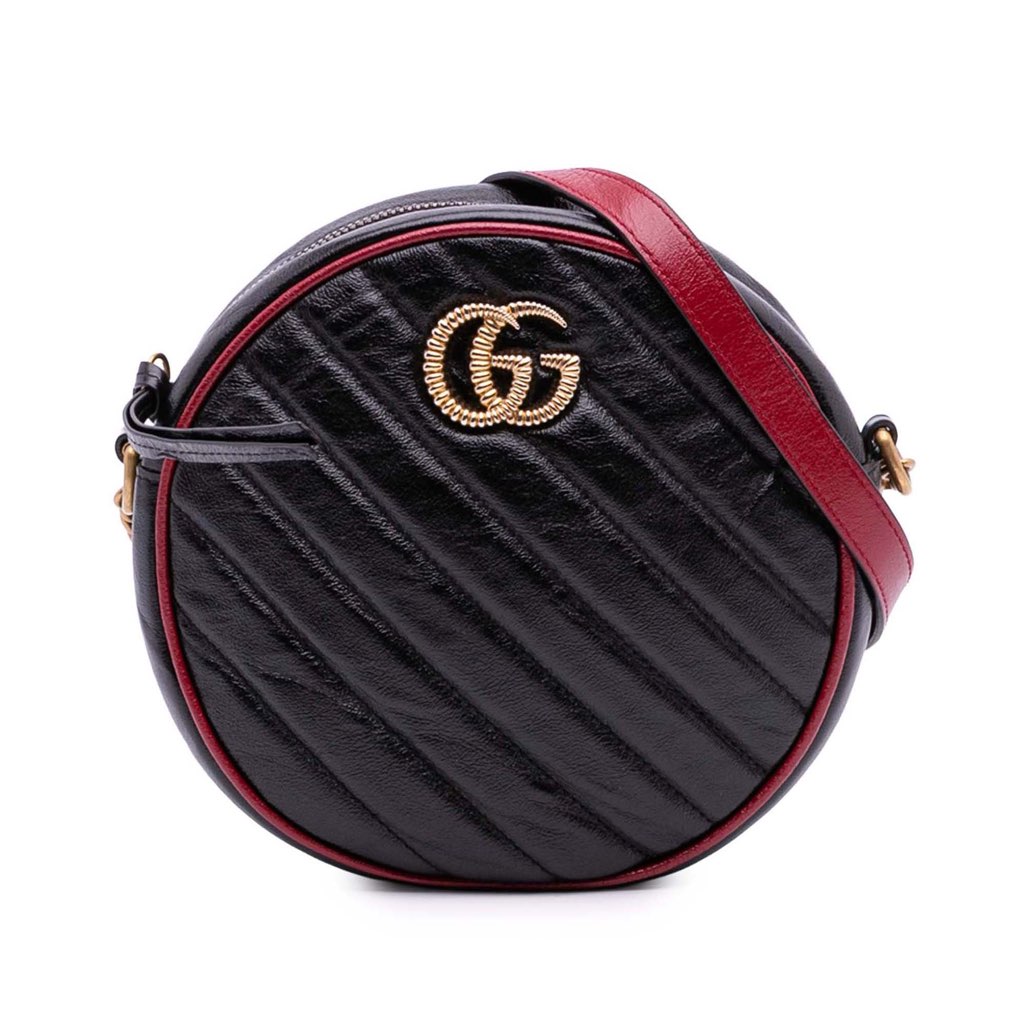 This crossbody bag features a leather body, gold-tone chain strap with leather guard, a top zip closure and interior pockets.