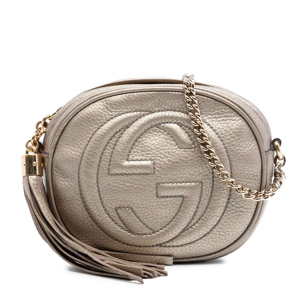 Gucci Mini Metallic Pebbled Calfskin Soho Chain Crossbody Go
