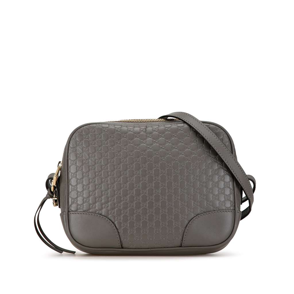 This crossbody bag features an embossed leather body, an adjustable flat leather shoulder strap, a top zip closure, and interior slip pockets.