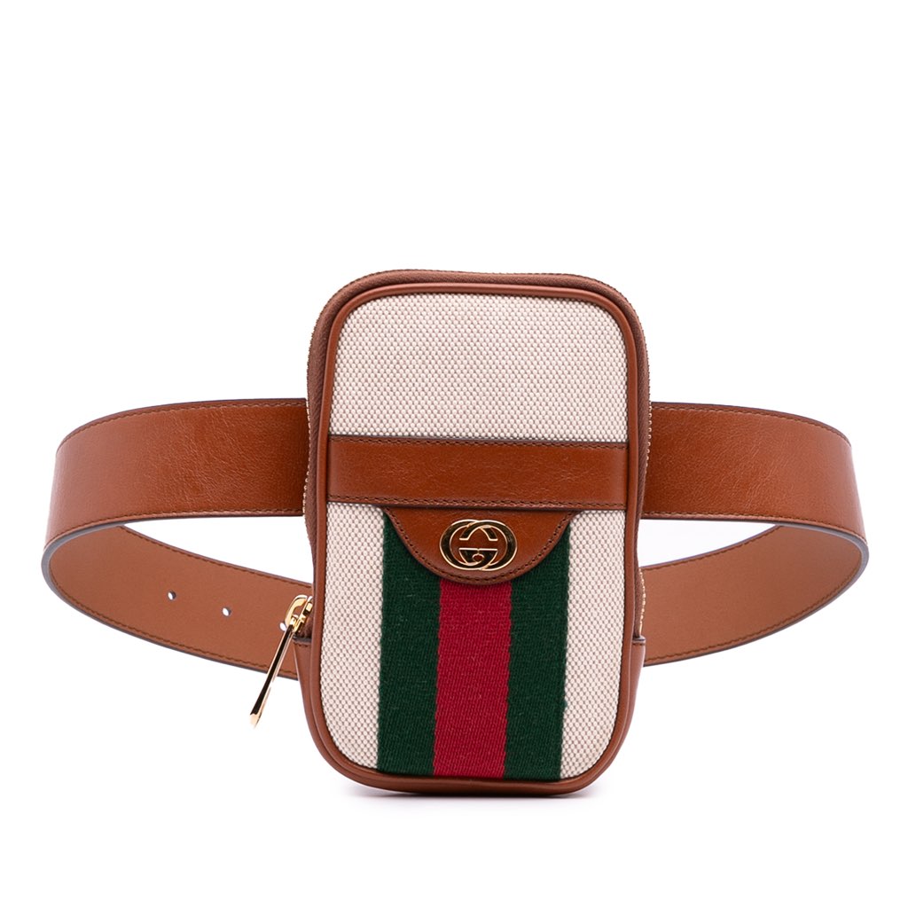 Gucci Ophidia Canvas Phone Case Belt Bag Brown Mini Canvas