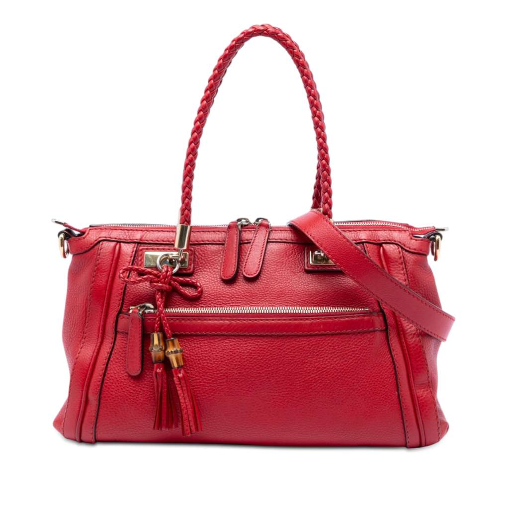 Gucci Pebbled Calfskin Bella Satchel Red X-Large Leather