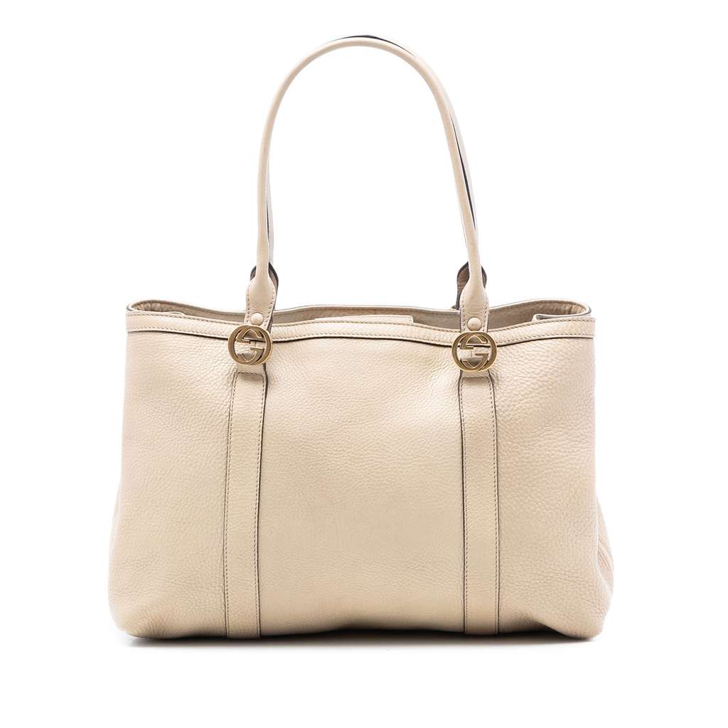 Gucci Pebbled Leather Miss GG Tote Brown X-Large Canvas