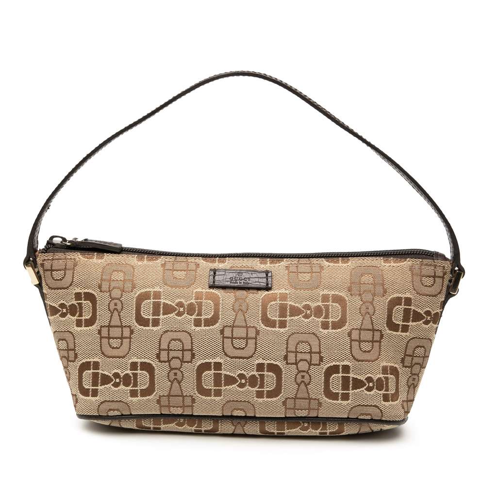 Gucci Printed Canvas Horsebit Boat Beige Small Canvas