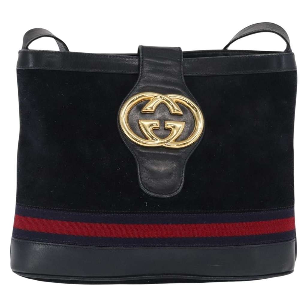 Gucci Sherry line shoulder bag Navy Medium Suede | Pre-Loved
