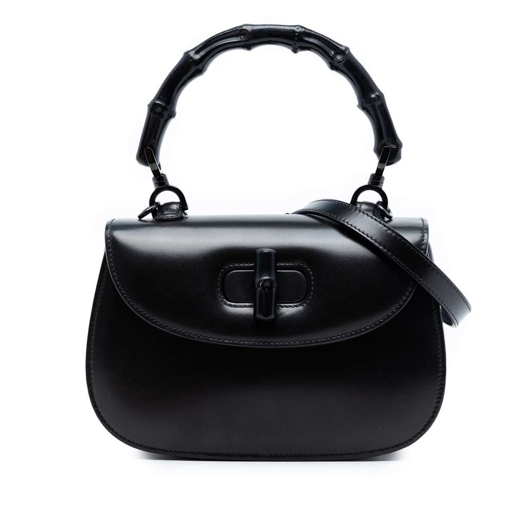 Gucci Small Calfskin 1947 Bamboo Top Handle Bag Black Small