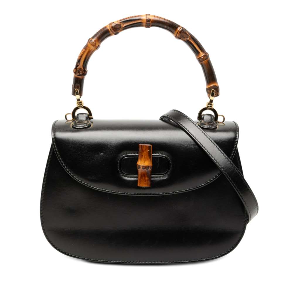 Gucci Small Calfskin Bamboo Night Black Small Leather