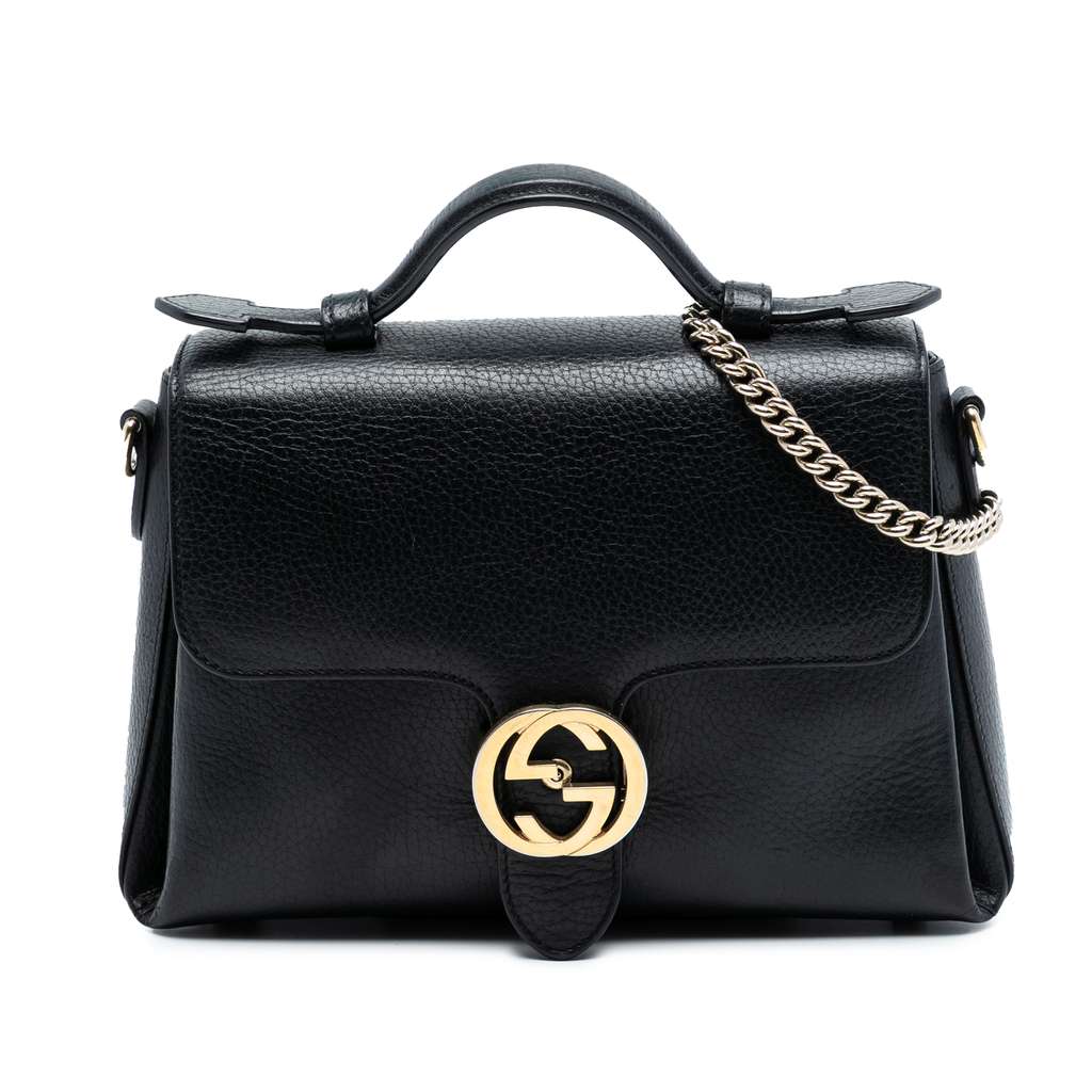 Gucci Small Dollar Calf Interlocking G Satchel Black Medium