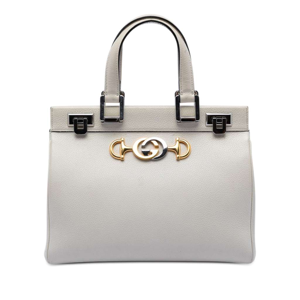 Gucci Small Grained Calfskin Zumi Top Handle Bag White Mediu
