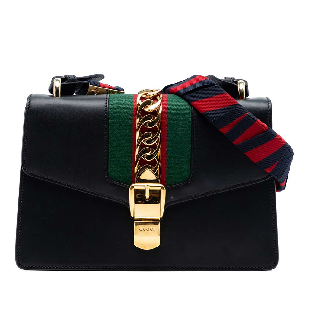 Gucci Small Leather Web Sylvie Satchel Black Medium Leather
