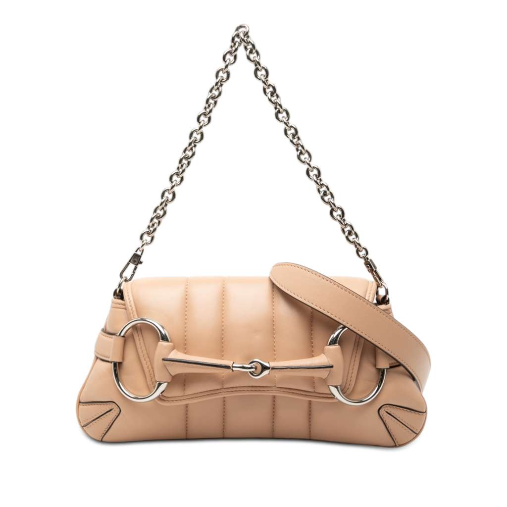 Gucci Small Quilted Calfskin Horsebit Chain Satchel Beige Me