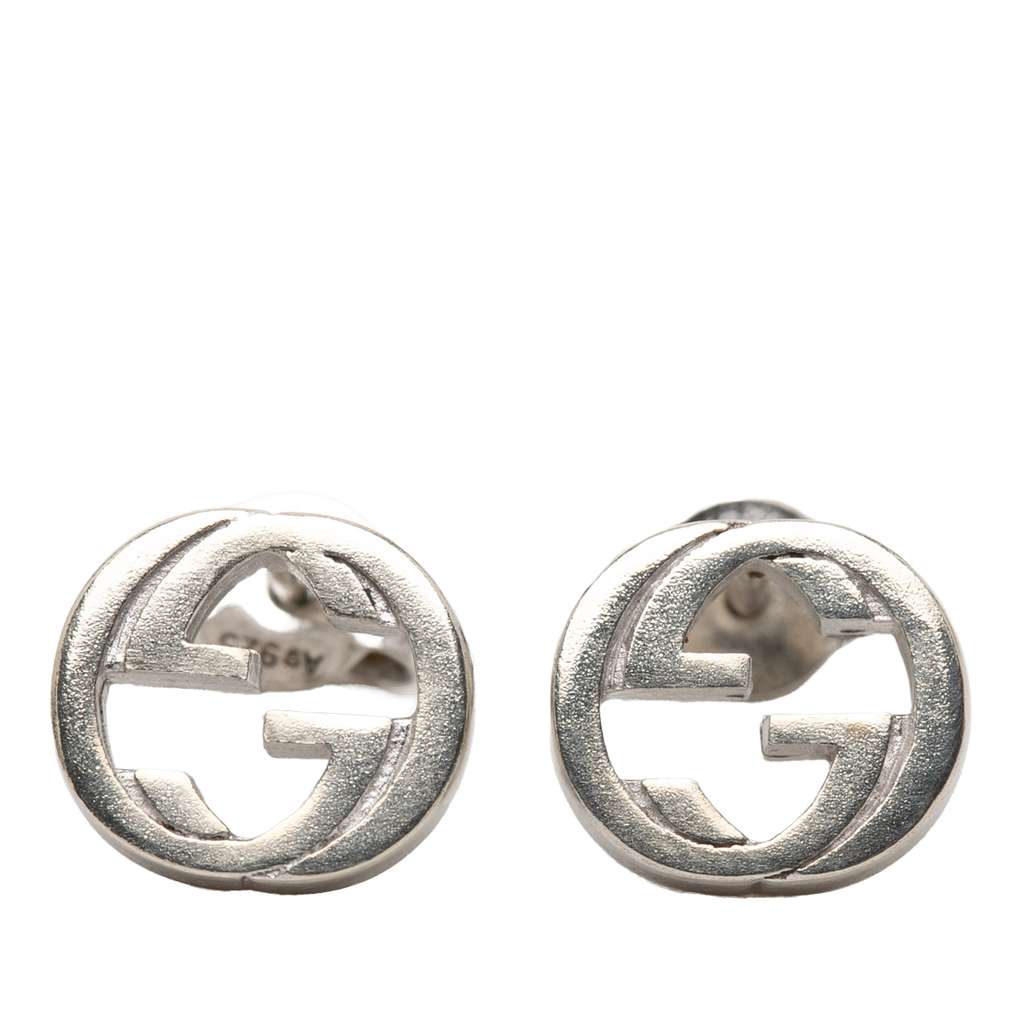 Gucci Sterling Silver Interlocking G Push Back Earrings Silv