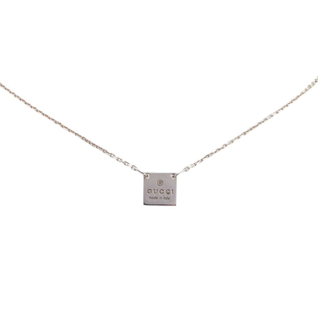 This necklace features a sterling silver body with square plate pendant, and a lobster clasp closure.