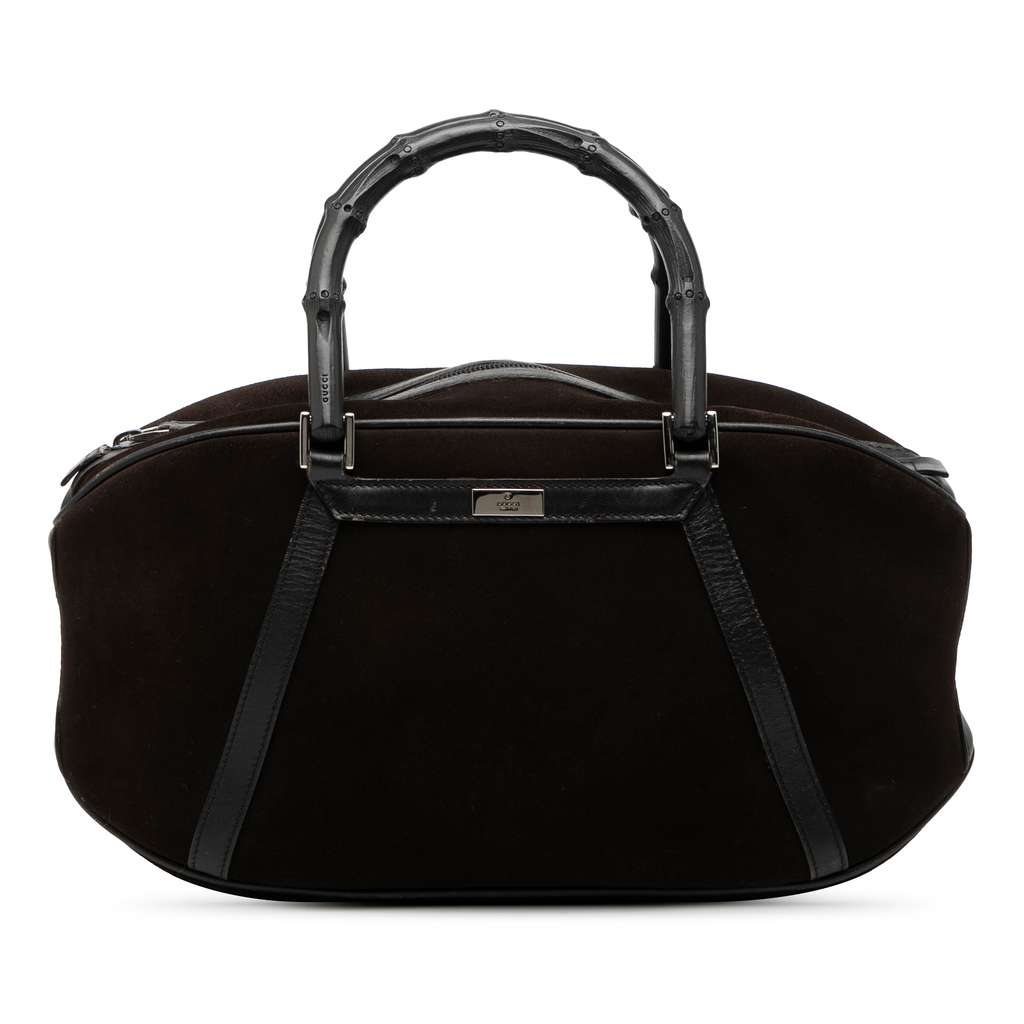 Gucci Suede Bamboo Handbag Brown X-Large Leather | Pre-Loved