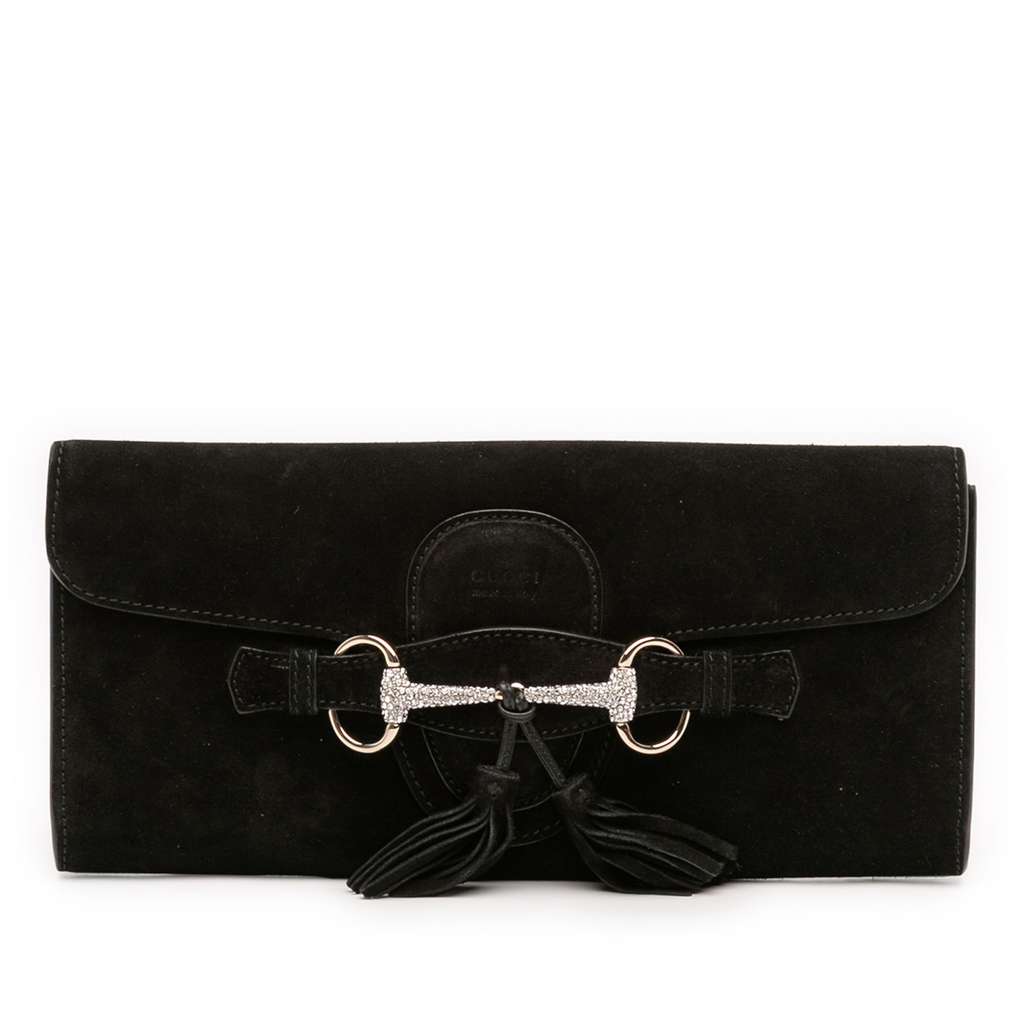 Gucci Suede Crystal Horsebit Broadway Clutch Black Medium Le