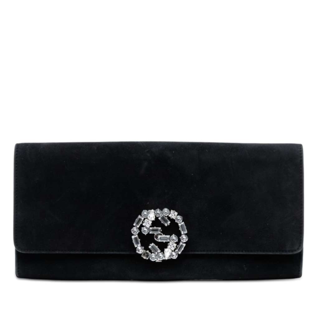 Gucci Suede Crystals Broadway Clutch Black Medium Leather