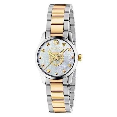 G-timeless wristwatch with Steel and yellow gold PVD band. Dial design features a mystic cat motif.