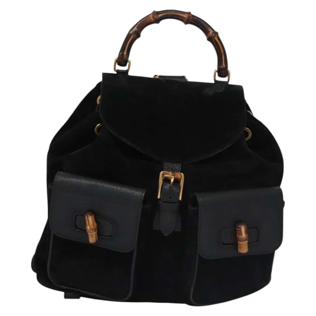 Gucci Vintage Bamboo Backpack Black Medium Suede | Pre-Loved