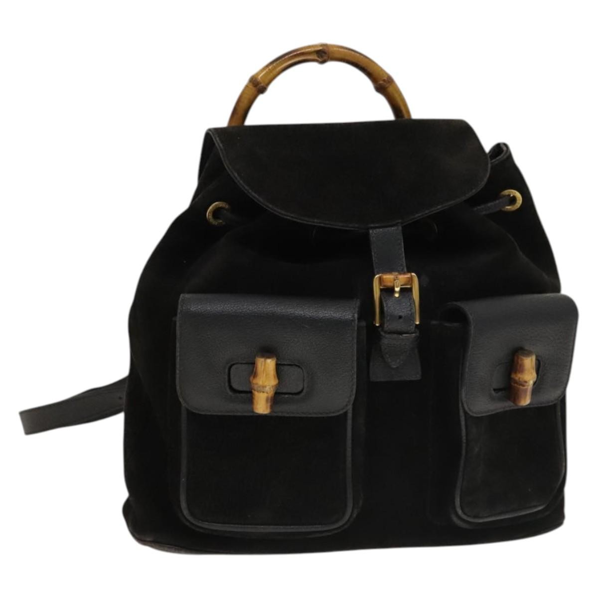 Gucci Vintage Bamboo Backpack Black Large Suede | Pre-Loved