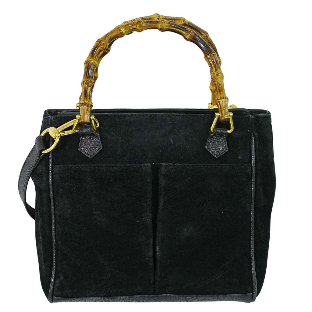 Gucci Vintage Bamboo Handle Bag Black Small Suede | Pre-Love
