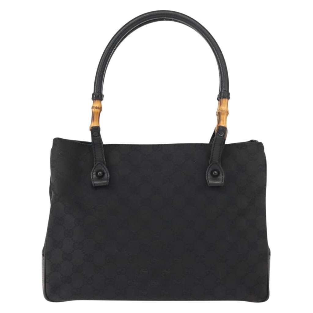 Gucci Vintage Bamboo Handle Bag Black Large Canvas