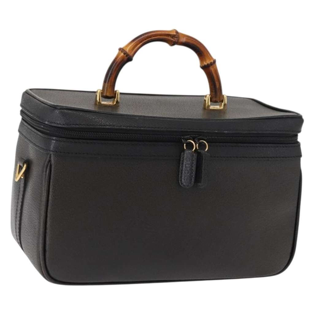 Gucci Vintage Bamboo Vanity Case Navy Large Leather