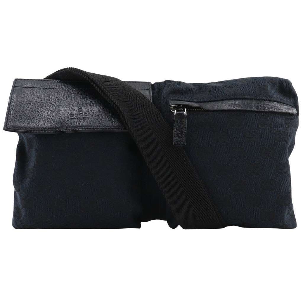 Gucci Vintage Double Belt Bag Black Medium Canvas | Pre-Love
