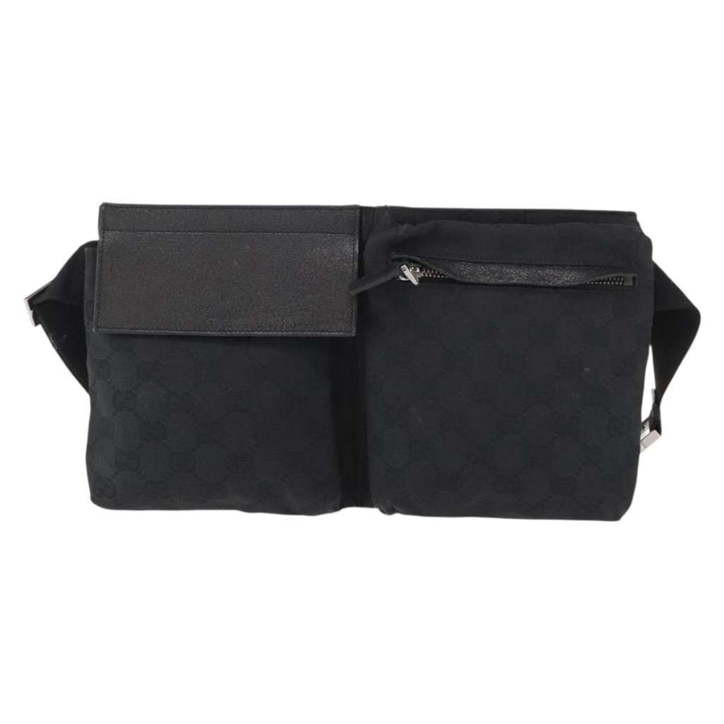 Gucci Vintage Double Belt Bag Black Medium Canvas | Pre-Love