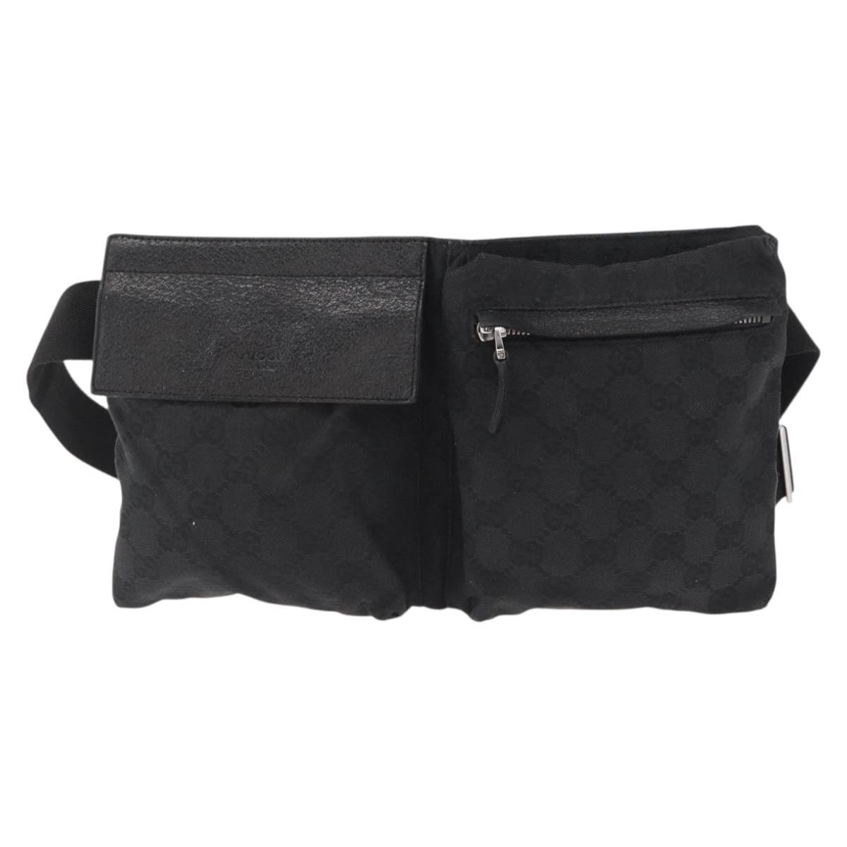 Gucci Vintage Double Belt Bag Black Medium Canvas | Pre-Love