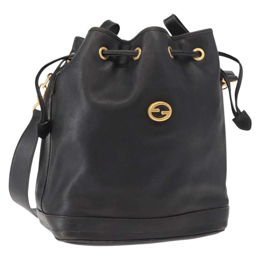 Gucci Vintage Drawstring Shoulder Bag Black Medium Leather