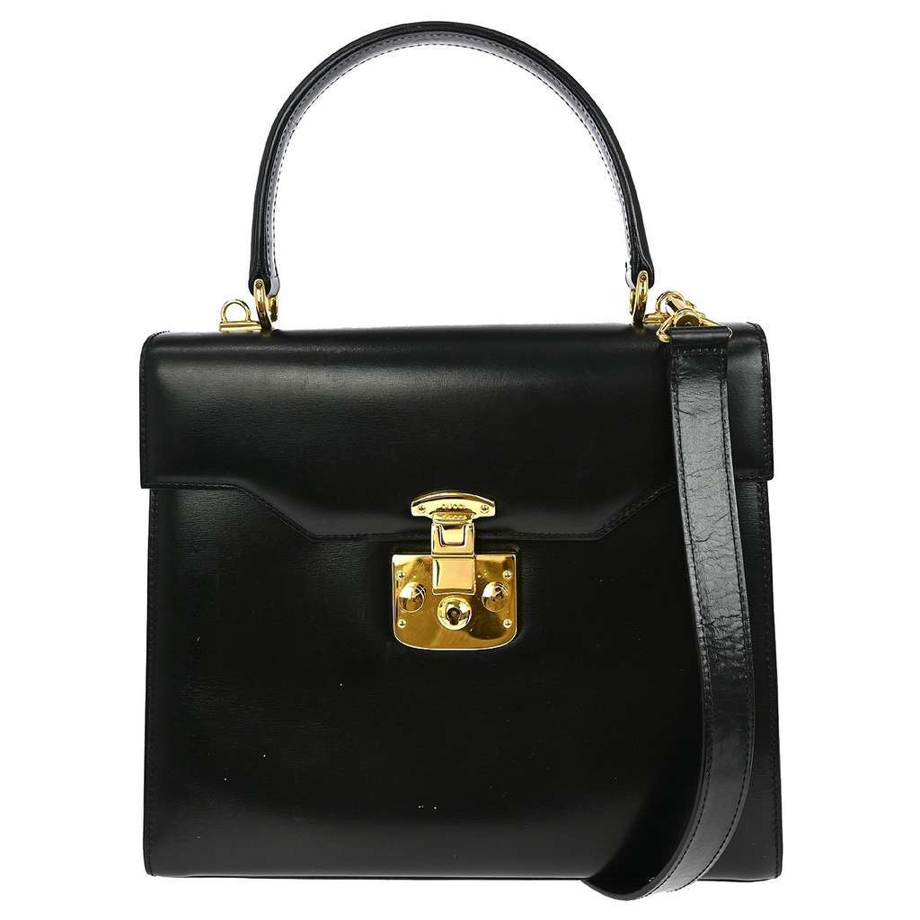 Gucci Vintage Lady Lock Top Handle Bag Black Small Leather