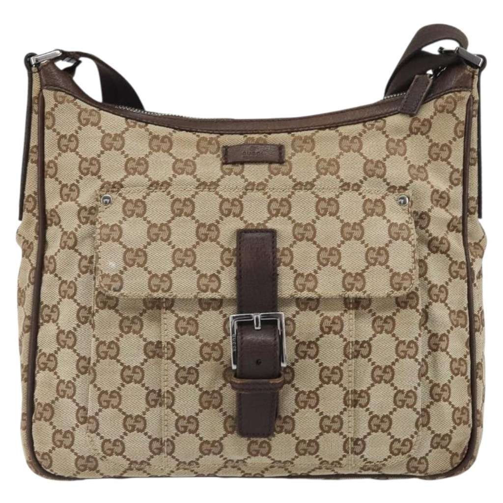 Gucci Vintage Shoulder Bag Beige Medium Canvas | Pre-Loved L