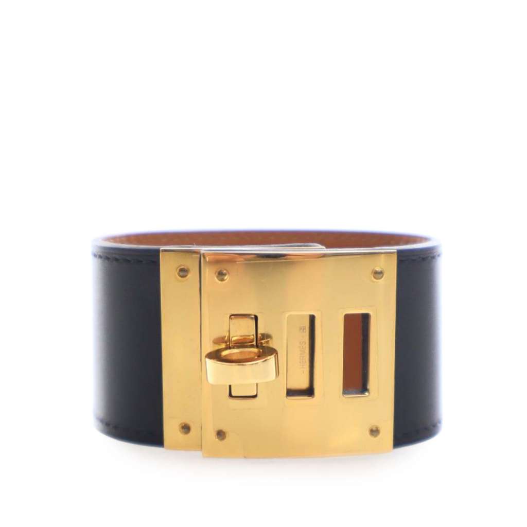 Hermès Swift and Gold Plated Kelly Extreme Dog Bracelet Blac